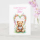 Send birthday wishes to your sister on her fifth birthday in the cutest way possible with this lovely card. A teddy bear, in front of a bunch of colorful flowers, presents a heart showcasing the age of 5. Make their birthday unforgettable with this charming card. A 5th birthday card for a sister.