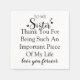 This design offers a sincere and loving message for your sister. With the quote "To My Sister Thank You For Being Such An Important Piece Of My Life love you forever," it's a perfect way to express your appreciation for her presence in your life. It's a reminder of the enduring bond and the lasting impact she has...