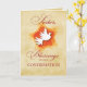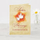 A beautiful little white dove on a soft brown and orange background with a natural texture look. The perfect card to send blessings and your congratulations to your sister on her Confirmation day.