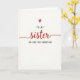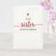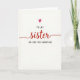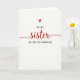 This card features a soft off-white background with lots of open space that keeps the focus on a sweet message. Near the top center sits a single red heart ❤️, like a small sign of affection hovering above the words. Just below it, the text “TO MY” appears in small, neat uppercase letters in a dark neutral tone, aligned centrally. The word “sister” is placed beneath as the main focal point, written in flowing red lettering with long, looping strokes that feel like a warm embrace between close family. A thin red flourish extends from the lettering, gently stretching outward as if reaching to include the whole design. Under that, “ON HER FIRST MOTHER’S DAY” is set in compact uppercase text in a dark neutral color, centered and spaced evenly for a calm finish 🌼. The only strong color accents are the red heart, the red “sister,” and the matching flourish against the quiet off-white field. The heart is positioned above the text, with all lines stacked neatly down the center of the card.