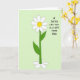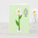 This card features a simple floral illustration on a soft pastel green background, with a tall white flower running up the left side like a gentle companion. The bloom has neat white petals arranged in a circle around a sunny yellow center, and a slim green stem rises with two curved leaves that lean as if reaching toward someone close ❤️. On the right side, the message “A SISTER LIKE YOU IS A GIFT FROM GOD” is set in black, with the lines stacked and aligned to sit comfortably beside the flower. The roomy spacing around the words and artwork gives everything a calm, uncluttered look, like a quiet moment shared between friends. The contrast of black lettering against the pale background makes the text easy to read without overpowering the delicate drawing. Near the bottom of the stem, a small cluster of tiny white petals appears, like a shy little bloom tucked in close 🌼. The overall palette stays within white, yellow, and green, with the soft green background keeping the scene airy and light. The final detail is a petite white bud-like cluster at the base of the main stem, just below the lowest leaf.