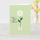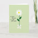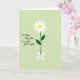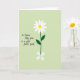 This greeting card features a soft pale-green background with a single white flower centered, its petals circling a warm yellow middle like a gentle sunburst. A slender green stem rises from the bottom with two deep-green leaves, and the bloom feels like it’s leaning forward in a quiet, affectionate gesture ❤️. Just below the flower, a faint mirrored version appears, as if the blossom is gazing at its own reflection on still water. On the left side, the message sits in flowing dark lettering, placed about mid-height so it balances the artwork without crowding it. The wording reads, “A Sister like you is a gift from God,” and the dark text stands out softly against the muted background 🌼. The open space around the flower and message keeps the scene calm, like a quiet moment shared between close friends. The reflection is lighter than the main flower, with a pale yellow center and softly faded white petals.