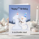 This cute snowman is building a snowy one that has a cupcake on the top to celebrate your sister's 1st birthday.