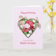 A romantic birthday card. A painting of roses is framed by an embellished golden heart. Give your sister-in-law a birthday greeting with a beautiful painting of a bouquet of roses.