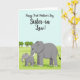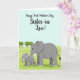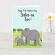 This card features a gentle scene of an adult grey elephant standing close beside a smaller calf, their bodies angled toward each other as if sharing a quiet, caring moment ❤️. The pair has oversized ears, curved trunks, and bright white tusks, with the larger one positioned slightly forward in a protective stance. They stand in a rolling field of lime-green grass that stretches back toward the horizon, giving the space an open, calm feel. Along the distant edge, a neat row of rounded, darker-green trees forms a simple backdrop beneath a pale aqua sky. Near the top, the greeting text sits prominently, with “Sister-in-Law!” set larger than the rest and colored in a deep, dark tone for emphasis. The remaining words appear above and around it in a flowing, calligraphy-like style, keeping the focus on the relationship while still feeling light and friendly 🌼. The overall artwork uses smooth shapes and minimal detail, and the grassy hills curve softly beneath their feet while the sky stays clear and uncluttered.