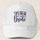Sister of the bride matching caps for the bride and groom's after party. Find matching hat for the sister of the groom.