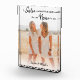 This Elegant Photo block will make a wonderful present for any sister or sisters this christmas, birthday or other special occassion. The modern way to display your most precious photographs this one features, a photo with a quote that reads 'A sister is a little bit of childhood that can never be lost.' personalized with their names at the bottom over a white faded overlay.