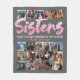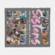 Personalized sister fleecy blanket featuring a trendy gray background that can be changed to any color, the word "sisters" in a cute pink gradient script font, a sibling quote, your names, and a 20 square photo collage template for you to customize to your own.