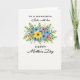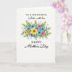 This card features a bright floral illustration centered on a white background, with a friendly, affectionate tone that feels like a warm note between close family ❤️. At the top, the text “TO A WONDERFUL” sits in dark, simple lettering, and just beneath it “Sister with love” appears in a flowing, cursive-style line that adds a tender touch. Below the bouquet, “HAPPY” is shown in the same dark, simple lettering, followed by “Mother’s Day” in matching cursive-style text. The bouquet itself is full and layered, giving the impression of an abundant gift offered with care. A large golden-yellow flower with a deep, dark center anchors the middle, surrounded by smaller blooms in sky blue, soft pink, pale lavender, and warm orange 🌼. Mixed green leaves and small sprigs weave between the petals, creating gentle movement and a cozy, romantic closeness in the arrangement. The dark lettering frames the colorful flowers above and below, while the white space keeps every petal and leaf sharply visible.