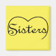 Updated design featuring the top of a heart and the word SISTERS worked into it - in black script on a solid colored or plain background. Plenty of room for personalization.
