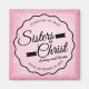 Bold and elegant Christian emblem design with words, "Sisters in Christ" in script with banner design elements. Top center of emblem has words, "Established by grace." Bottom center of design emblem contains words, "rooted and grounded in Jesus." Emblem is black on beautiful feminine pink textured background. Area for your custom names (friends names) under the word, "Christ." Great gift for any Christian sister.