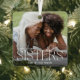 Simple sister keepsake full photo christmas ornament. Featuring a photograph of you and your sister, the text 'SISTERS make the best friends' in elegant white typography, name/s of the siblings.