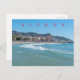 A beautiful view of the sea off the town of Sitges in Spain with the Church of Sant Bartomeu and Santa Tecla in the background printed on postcard.
