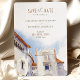 Announce your destination wedding in style with this beautifully designed "Save the Date" card, featuring a charming watercolor illustration of Sitges, Spain. This card perfectly captures the essence of a romantic Mediterranean setting, with vibrant palm trees and quaint Spanish architecture. The soft color palette and elegant typography make this card ideal for couples planning a destination wedding or seeking a timeless, sophisticated design. Your guests will be enchanted by this preview of your wedding day in the picturesque coastal town of Sitges.