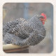 This party coaster features a barred rock hen named Janet hogging the flower pot while other chickens wait their turn. Great for informal parties!