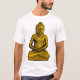 Picture of sitting Buddha. Buddha is focused, meditating with his eyes closed and legs crossed. Gold color.