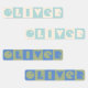 Rectangular iron-on patch for clothing or accessories with customizable 6-letter boy's name.