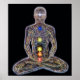 Six Chacras/Chakra_Hinduism Poster: is a Sanskrit word that translates as "wheel" or "turning." It is a concept and term originating from Hindu texts and used in Hindu practices. Chakra is a concept referring to wheel-like vortices which, according to traditional Indian medicine, are believed to exist in the surface of the etheric double of man.[1] The Chakras are said to be "force centers" or whorls of energy permeating, from a point on the physical body, the layers of the subtle bodies in an ever-increasing fan-shaped formation. Rotating vortices of subtle matter, they are considered the focal points for the reception and transmission of energies.[2] Different systems posit a varying number of chakras; the most well known system in the West is that of seven chakras. It is typical for chakras to be depicted as either flower-like or wheel-like. In the former, "petals" are shown around the perimeter of a circle. In the latter, spokes divide the circle into segments that make the chakra resemble a wheel (or "chakra"). Each chakra possesses a specific number of segments or petals. Texts describing the chakras go back as far as the later Upanishads, for example the Yoga Kundalini Upanishad.