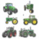 Here are six green tractors - new ones, old ones, shiny ones, and dull ones!