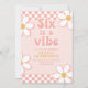 Six is a Vibe Retro Check Pink Daisy Invitation