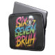 This vibrant, retro-style design features the phrase "SIX SEVEN BRUH" in bold, neon colors with a cool skeleton wearing pink sunglasses. It has a fun, 80s/90s aesthetic, often associated with memes, humor, and a playful attitude. The dynamic typography and bright palette make it perfect for apparel or social media.