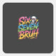 This vibrant, retro-style design features the phrase "SIX SEVEN BRUH" in bold, neon colors with a cool skeleton wearing pink sunglasses. It has a fun, 80s/90s aesthetic, often associated with memes, humor, and a playful attitude. The dynamic typography and bright palette make it perfect for apparel or social media.