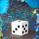 Six-sided die with dots on the sides of the cube to indicate the numbers for the sides.
