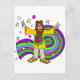 Sixties style hippie with his long hair, sandles, and dyed shirt. He has a beard and a head band and is holding both hand up to show the peace sign. Swirling colors are behind him and stars and other shapes swirl above.