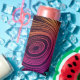Can cooler with a cool pattern with a sixties vibes. Rainbow colored circles and swirls.