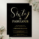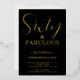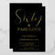 Sixty and Fabulous script, minimal black and gold foil 60th birthday invitation that you can personalize and send out for your sixtieth birthday party celebration. The words "Sixty and Fabulous" are set in a popular script font.
