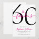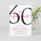 Sixty and Fabulous script, minimal pink-and-black modern 60th birthday invitation that you can personalize and send out for your sixtieth birthday party. The words "Sixty and Fabulous" are set in a popular script font. The text colors can be changed using the edit menu.