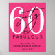 Celebrate in style with this modern hot pink Fabulous Birthday Party Invitation, perfect for a “Sixty and Fabulous” theme or any milestone celebration. The design features a large white “60” at the top with the word “sixty” written in elegant black script layered over it. Below, “fabulous” appears in a bold black sans serif font for a clean, modern finish.
