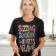 A colorful illustration with the words Sizzling Sensation Hearts Aflame written in a playful, hand-drawn style. Each letter is a different color, adding to the vibrancy of the artwork.