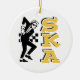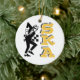 Lightweight, smooth, pure white ornament with nice sheen. Perfect size to be seen from across the room ... and to attract closer inspection! Price was great for ordering enough for the whole family! Clear, bold black design just as requested. Matches the order exactly. Just so nice!