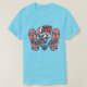 The shirt is good quality and fits just fine, but the colors of the printing are not as bright as in the sample photo. Not the best. The colors are a lot brighter in the sample photo; when I received the shirt they appeared faded. The red looks a little more pink and the blue is a lot lighter. N.B. I did not wash the shirt yet.