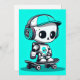 A playful mix of quirky charm and cool vibes with an adorable robot confidently skating.