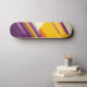 Skateboard shown in a multi purple and gold colors abstract graphic print.