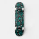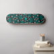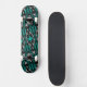 This quality made skateboard is shown with a abstract art pattern print in colors of black, grey and teal.