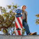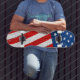 Skateboard shown in a patriotic USA Flag graphic print.