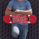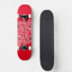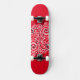 Skateboard shown in a solid color of red with a artful black and white swirl graphic print.