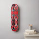 This quality made skateboard is shown with a abstract art pattern print in colors of grey, black and red.