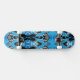 This quality made skateboard is shown with a abstract art pattern print in colors of grey, blue and black.