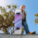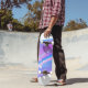 Skateboard is shown in a artful multi color abstract print.