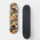 This quality made skateboard is shown in a abstract waves print in orange and black multi colors.