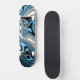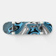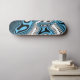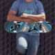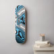 This skateboard is shown in a blue color abstract art swirl print.