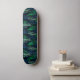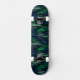 This quality made skateboard is shown in a animal print in blue and green multi colors.
