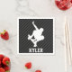 Cool, colorful kid's skateboarding, skater, skateboarder, white extreme, xtreme sports silhouette design on black and dark gray, grey diagonal stripes pattern. Perfect gift for baby, toddler, kids, children, teens, or adults! Personalized the design by adding a child's name or custom text with athletic, sporty look sports white font. Visit our store, Birthday Party House, for more great customizable boy and girl products!