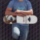 skateboard with photo of English Bulldog and the words: "Bulldog Board"