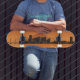 Skateboard Deck with orange Portland Skyline