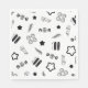 Paper napkins featuring skateboarding designs and elements! Each napkin is adorned with a captivating array of skateboard motifs, including iconic skateboard imagery such as skateboard decks, trucks, and wheels, complemented by retro-inspired elements like lightning bolts and stars, all in a striking black and white design.